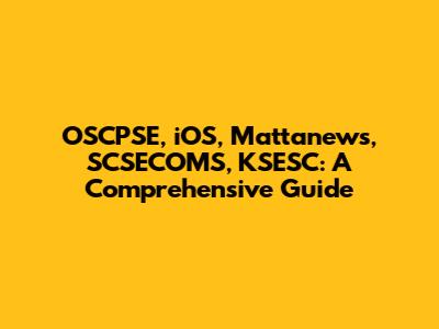 OSCPSE, IOS, Mattanews, SCSECOMS, KSESC: A Deep Dive