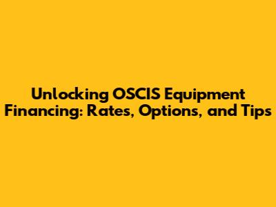 Unlocking OSCIS Equipment Financing: Rates, Options, And Tips